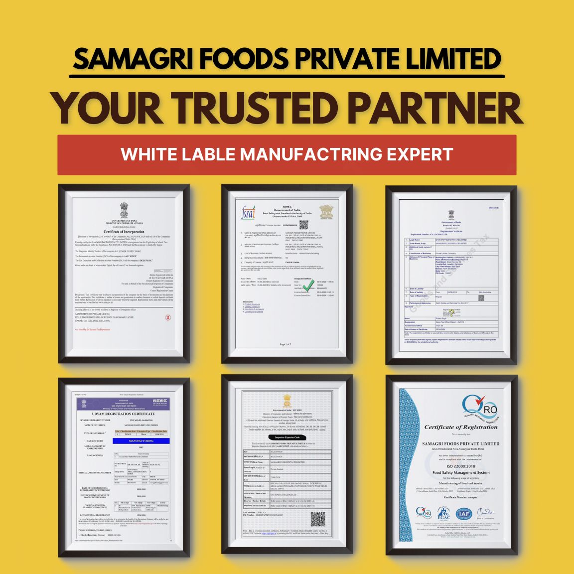Samagri Foods Private Limited, is a leading white label snack manufacturer in Delhi. We specialize in crafting premium-quality, customized snacks that cater to diverse tastes and elevate your brand.